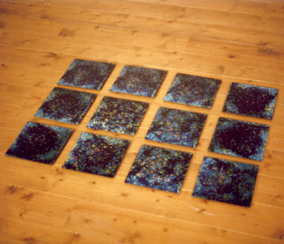 Klangfotografien - Visualisierung einer Klangsequenz - Klangspuren, wie auf einer Schallplatte werden auf zwölf Tafeln fotografisch fixiert. (1994) |