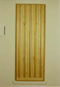 Aus einer Wandnische wird durch Herausziehen der Schübe Verborgenes hörbar. Erinnerungen des Zuhörers verbinden sich mit den Klangdokumenten aus der Vergangenheit. (1999) |